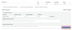 Ignite AI Author lnageliPublished on February 13, 2026February 13, 2026 Ignite AI Features Rubric Generator Go to an Assignment, then add a Rubric, and then you'll see this:
