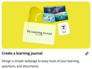 This month's Adobe update, we are excited to show you how students can use Adobe Express to create digital learning journals. This guided activity encourages students to document their questions, reflect on new ideas, and explore topics that spark their curiosity. You can access the guided learning activity here: Learning Journal Guided Activity.